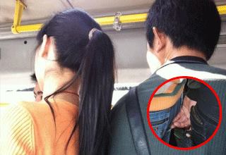奇怪的是此女尽然没有逃离的动作,低头玩手机。不过我估计她所有的感觉应该集中到屁股上了。
